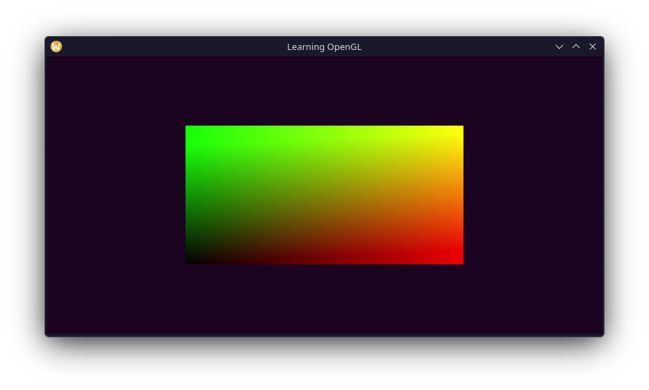 glEnableVertexAttribArray(0);Now for the shader code, I've added an offset of 0.5 to the x and y components so that the range of colours on the square is between 0 and 1.